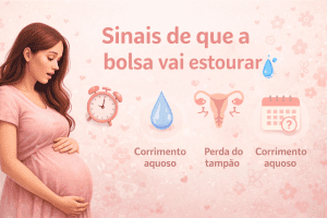 A ruptura da bolsa promove a liberação do líquido amniótico, ou seja, a bolsa de membrana que envolve o bebê. Esse é um dos primeiros sinais que você irá entrar em trabalho de parto.