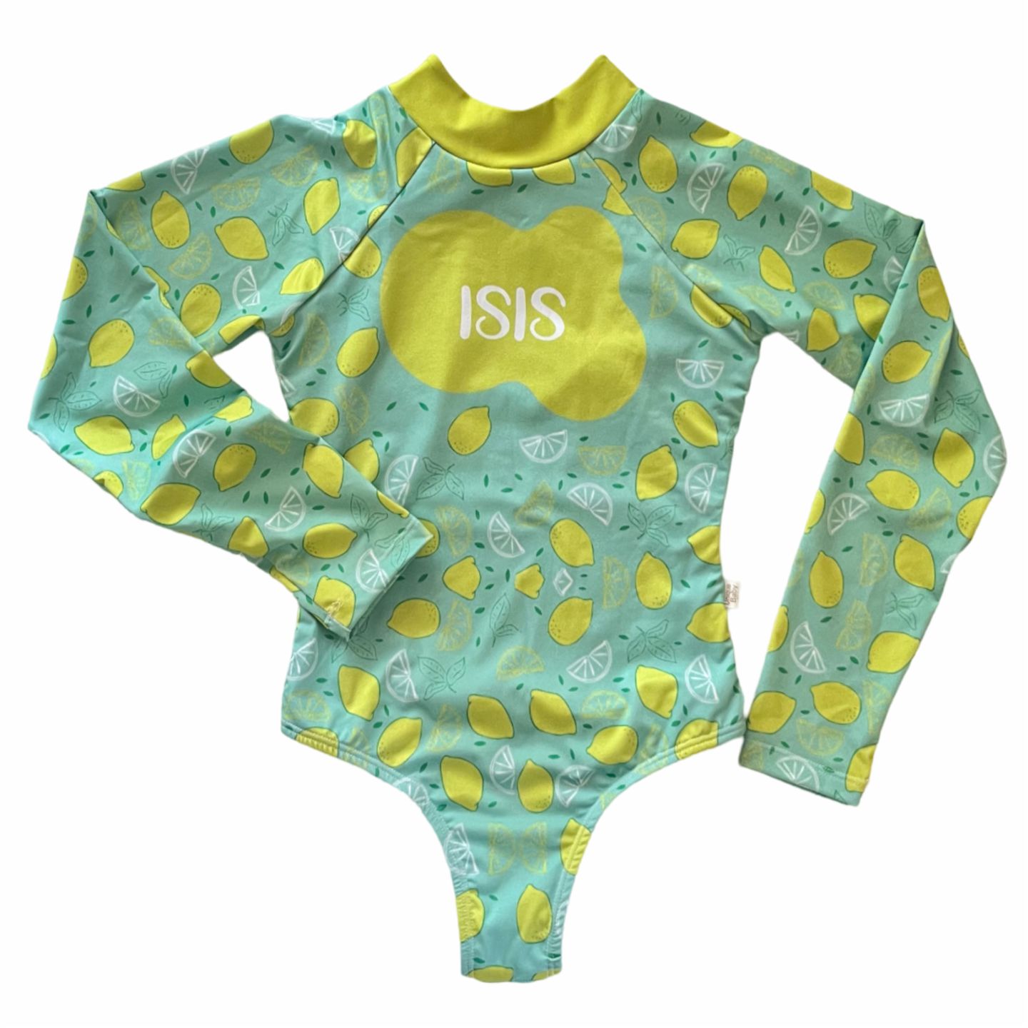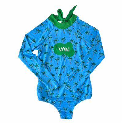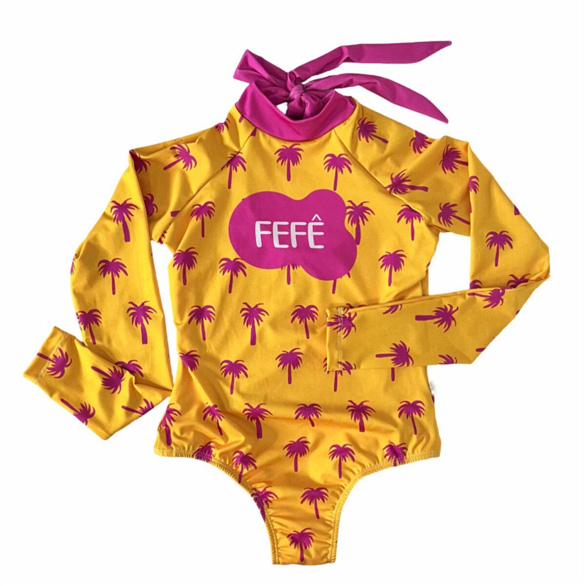 O maiô é personalizado com a estampa escolhida e o nome da criança.